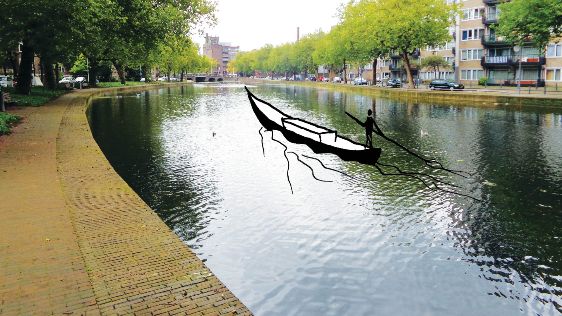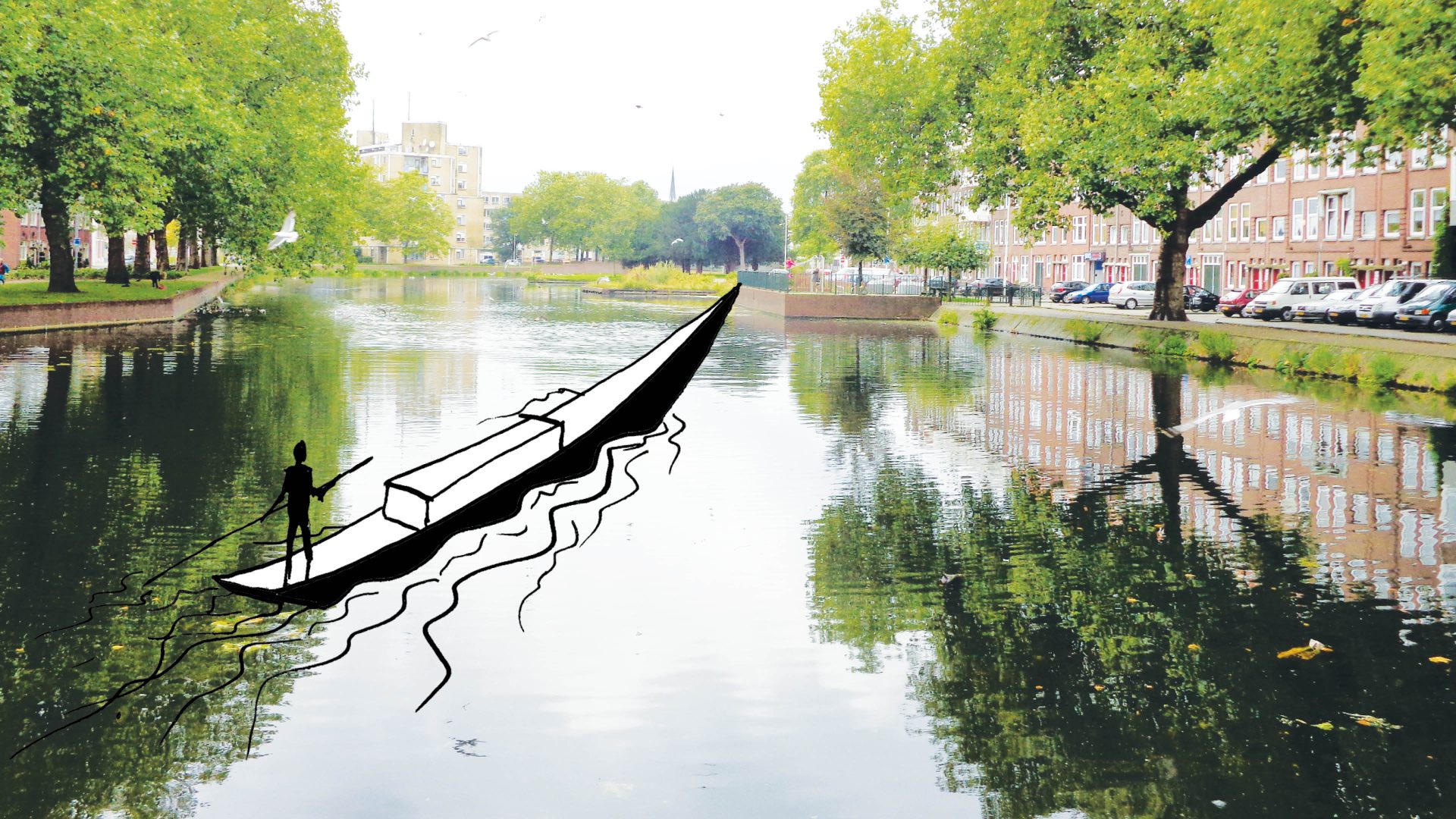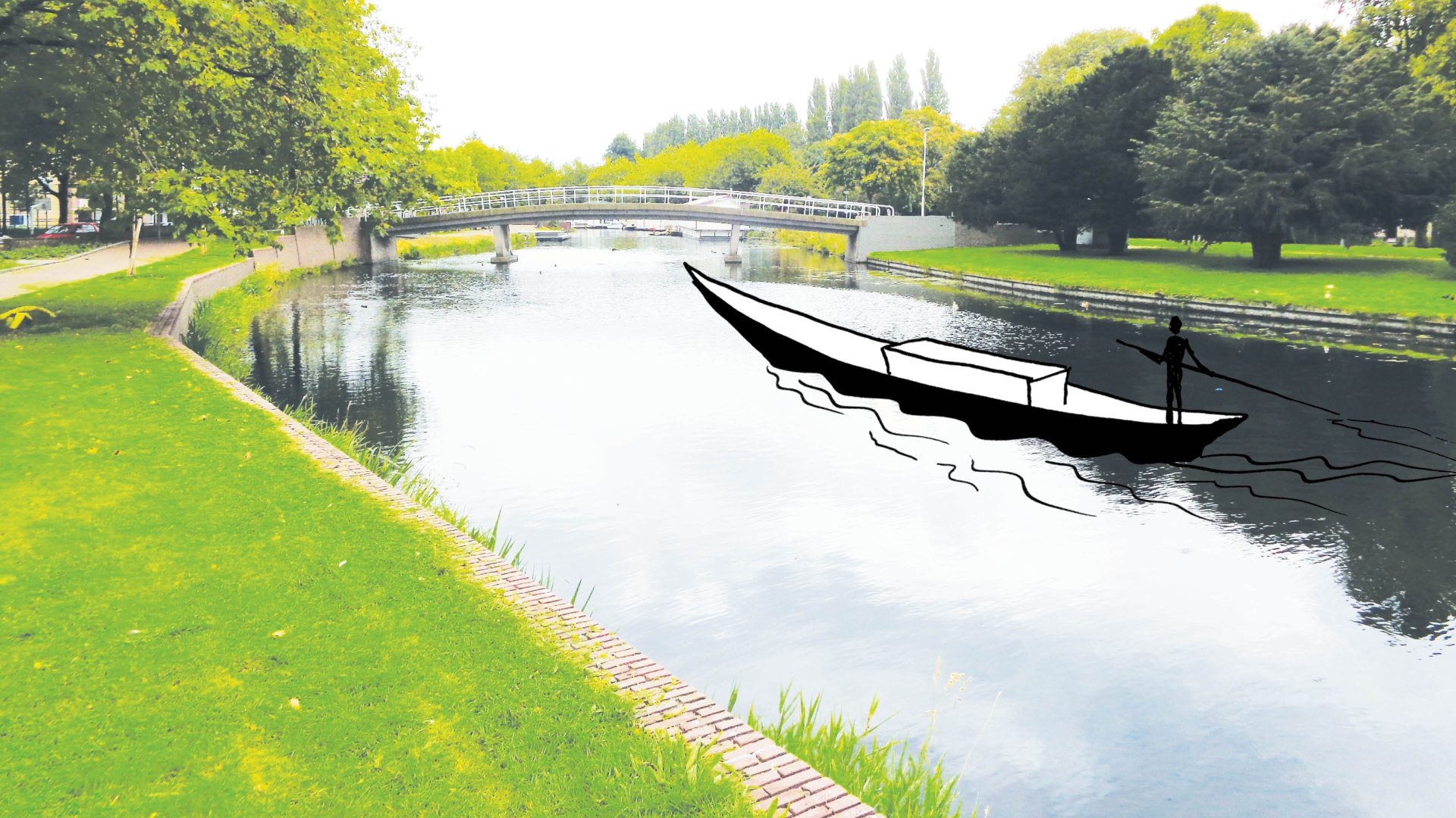Verbeelding van de mogelijke activering van de Rotte bij de Crooswijksebocht, door een uitvaartceremonie, zoals in Venetië en andere mogelijkheden van de rivier in de stad.