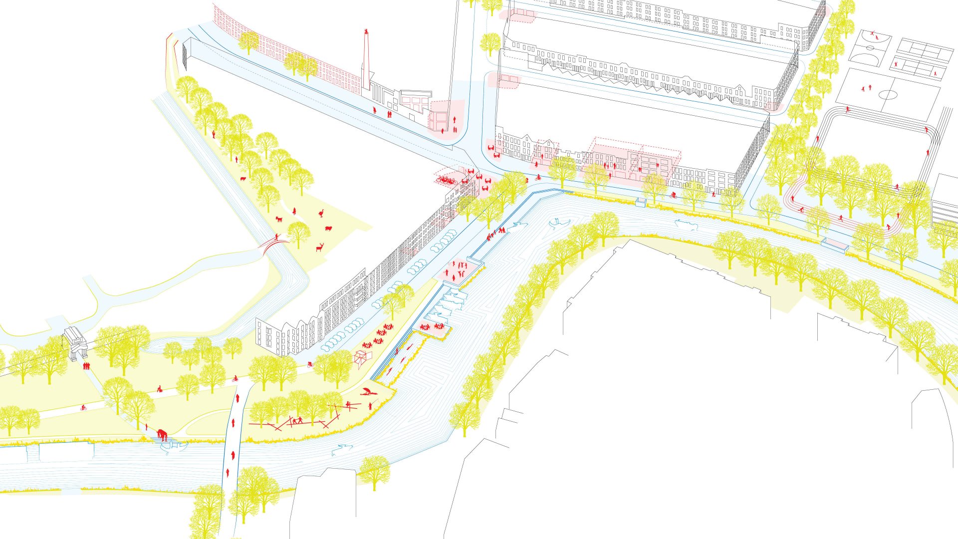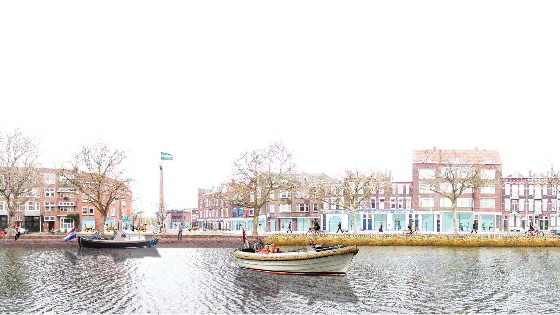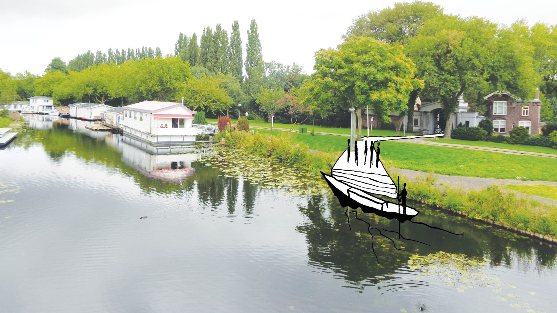 Verbeelding van de mogelijke activering van de Rotte bij de Crooswijksebocht, door een uitvaartceremonie, zoals in Venetië en andere mogelijkheden van de rivier in de stad.