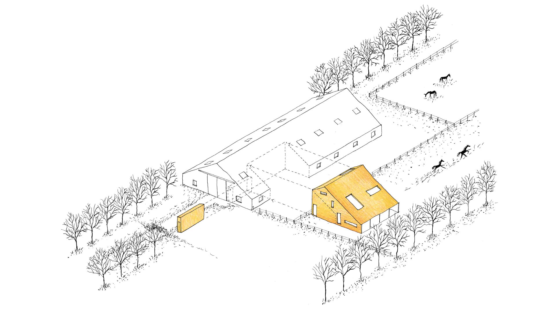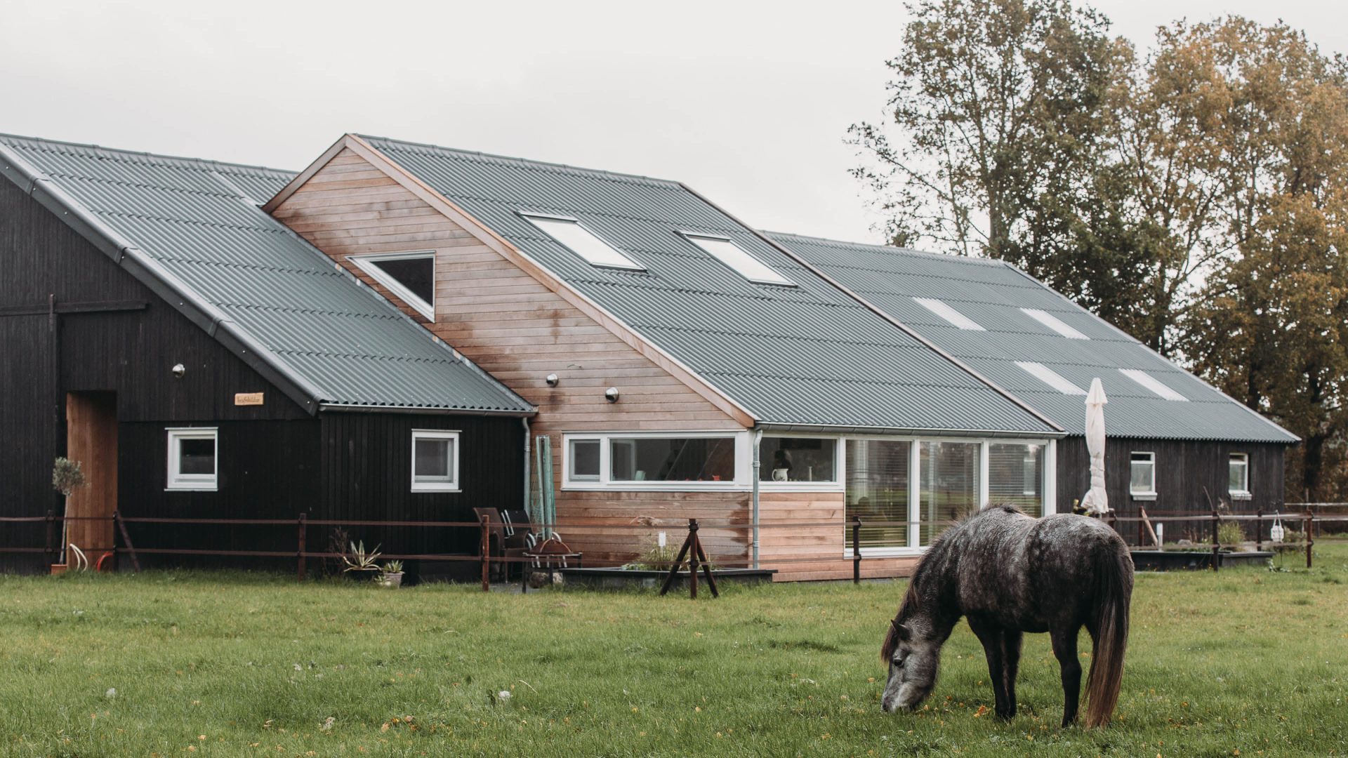 Een nieuwe woning in een bestaande schuur en stal voor IJslandse paarden.